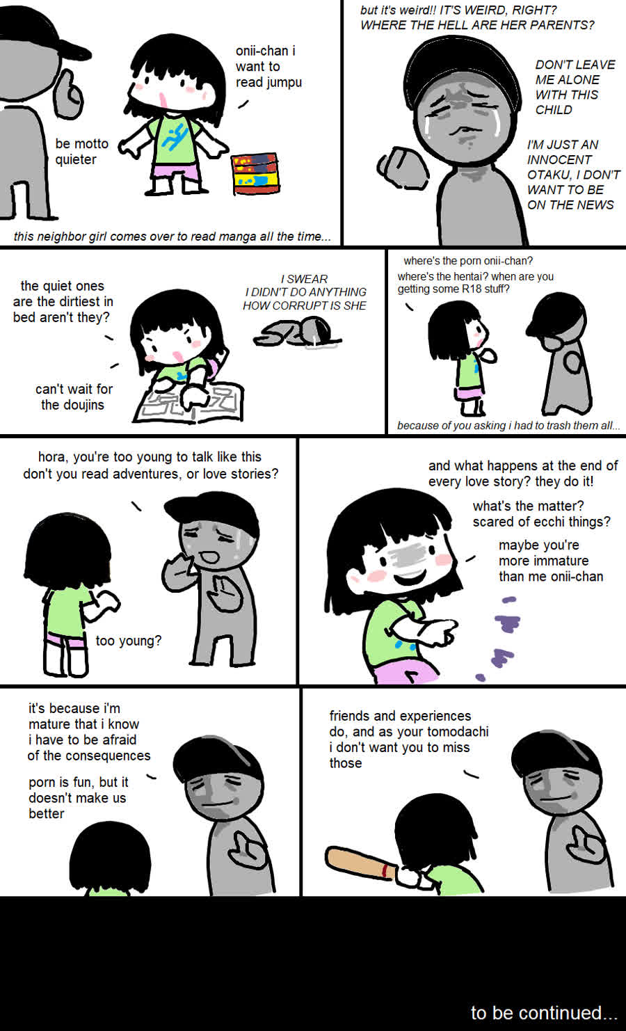 Always check before opening your doors frens...Hello there! So the comic this time is a parody of sorts for the way manga or doujins begin, as well as general anime culture, but I thought it best to split it to make a part 2! The scope was going to be larger with more happening, you see. I tried some more absurdity and I think you'll be surprised when the next part eventually rolls out. Have a nice day everyone!