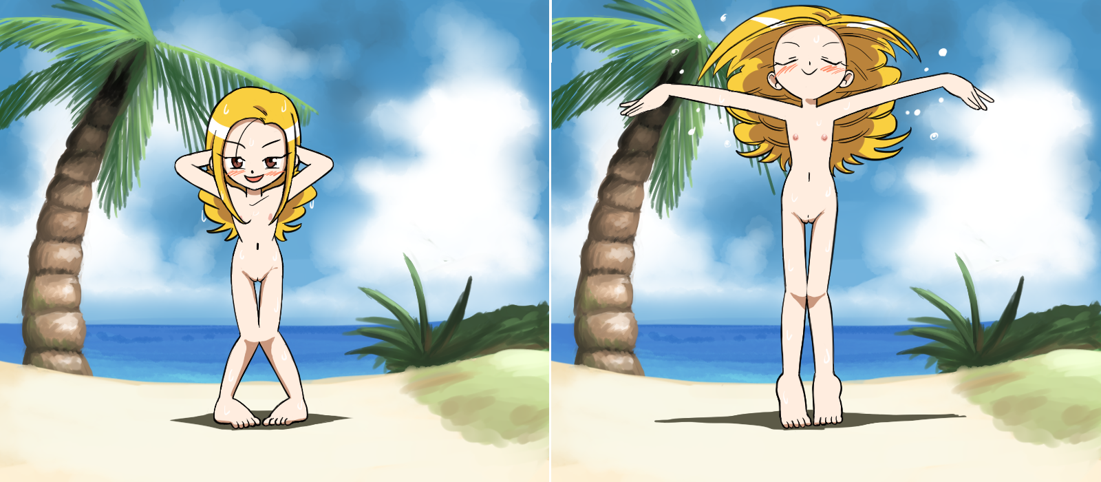 I love the tropical feel of the beach, the palm tree, the beautiful blue water… I suppose the naked loli is good too. Is the anime she’s from any good?