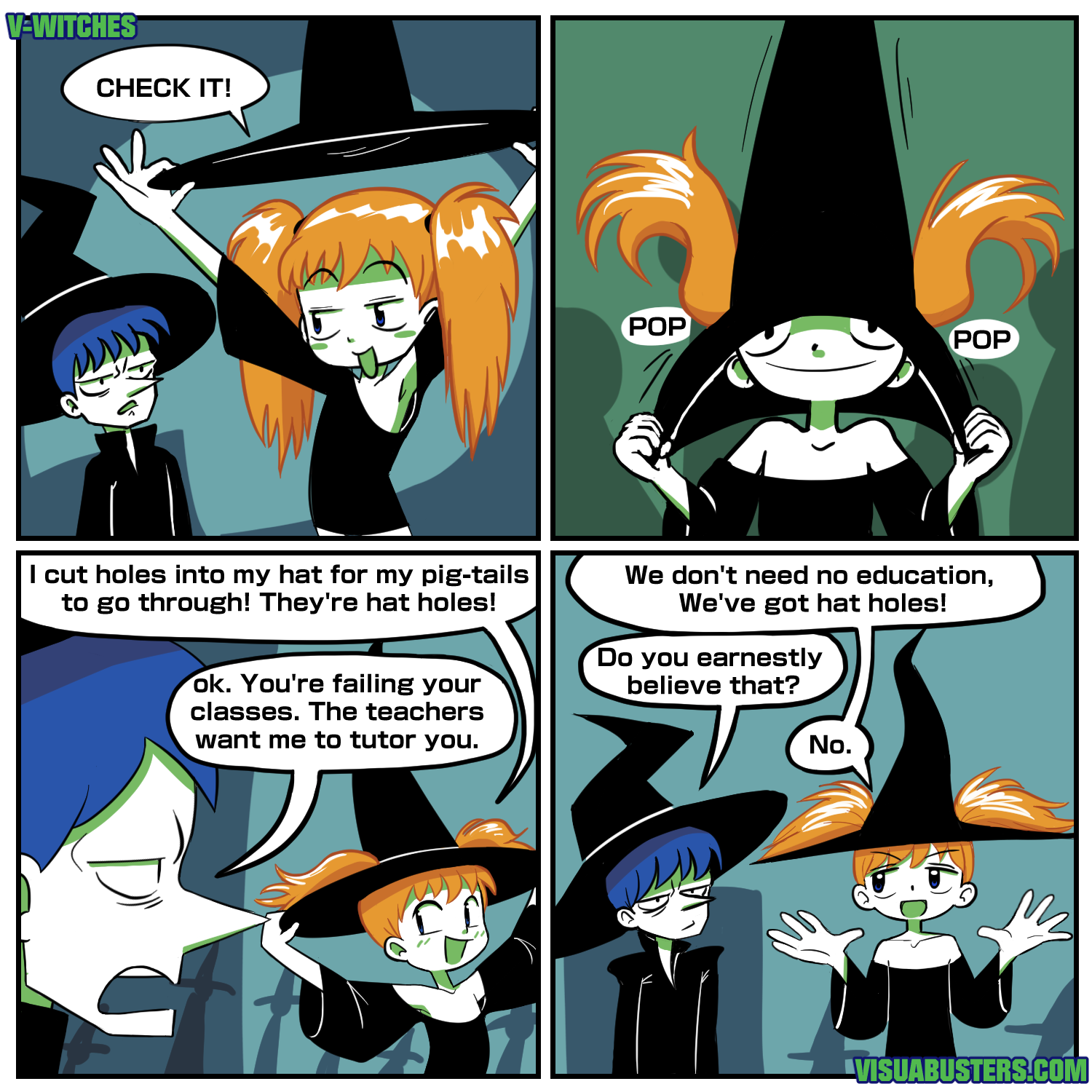 Both of these entries inspired the title "V-WITCHES"! So those are our winners, they'll be having a custom V-WITCHES comic made, EACH! Hooray! (Argy, please reply below for your prize)