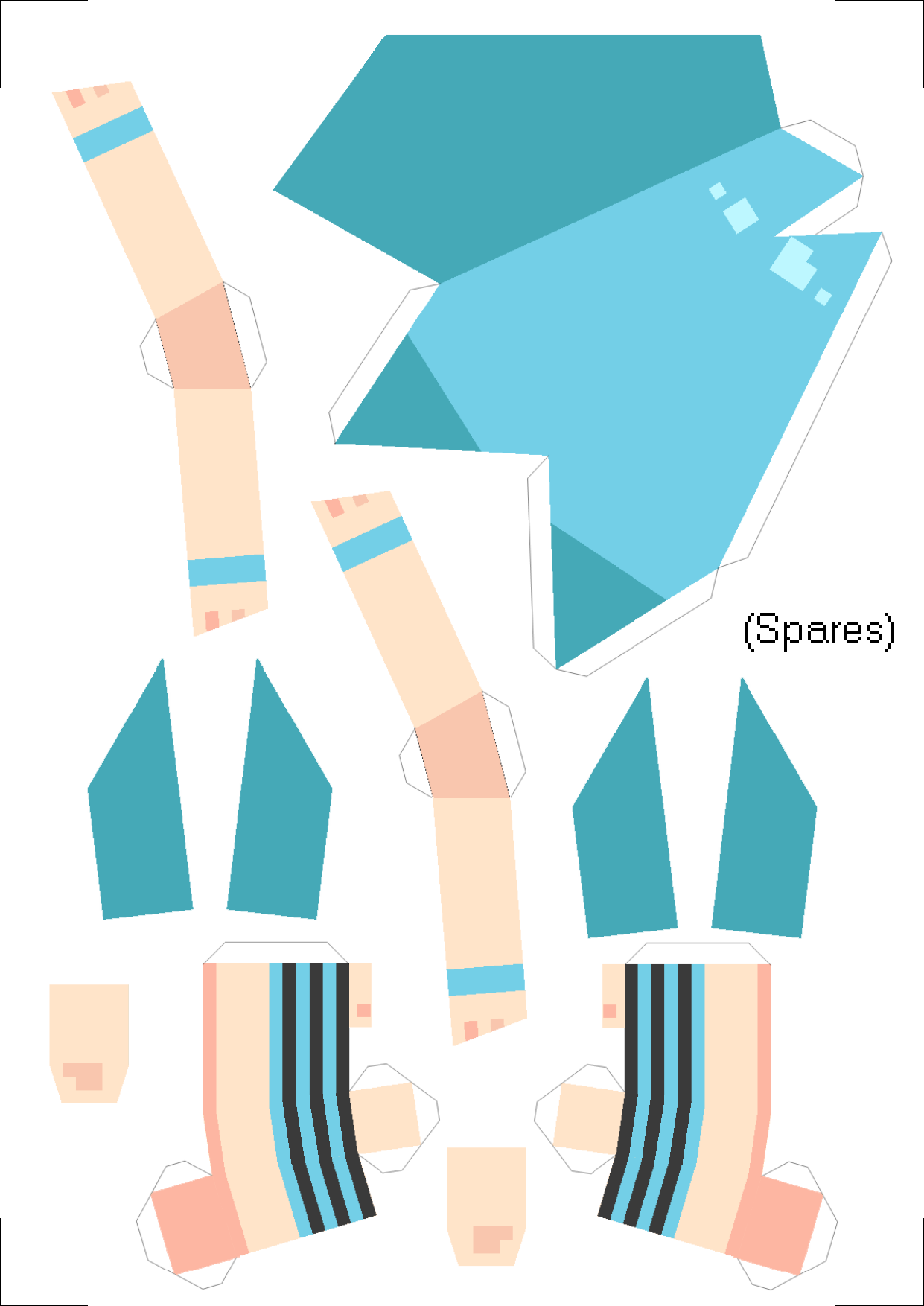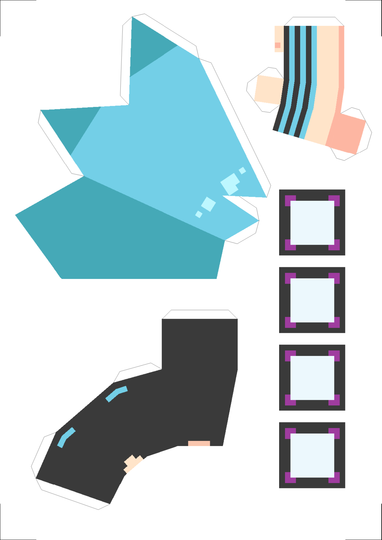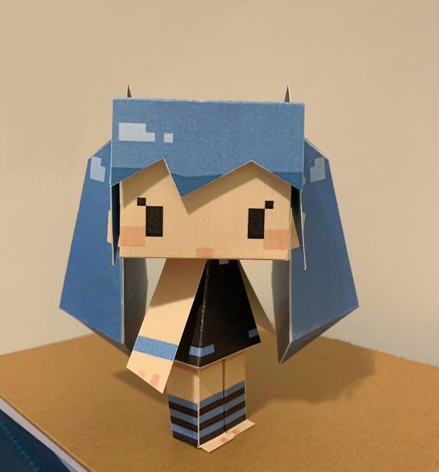 It's a Miku in simple sleepwear, with a simpler design so anyone can modify it a lot later! If you're wondering why all the paper, things have been pretty busy as I slowly try to return to my usual pace of drawing for fun, so I've been doing a lot more lowpoly (the only way to slack off at work)!! I sincerely hope you will have fun folding this sleek Hatsune Miku! Again, I recommend using cardstock and scissors, and a version for monochrome printing will be made soon! Lots of creative projects will slowly make their way out soon...