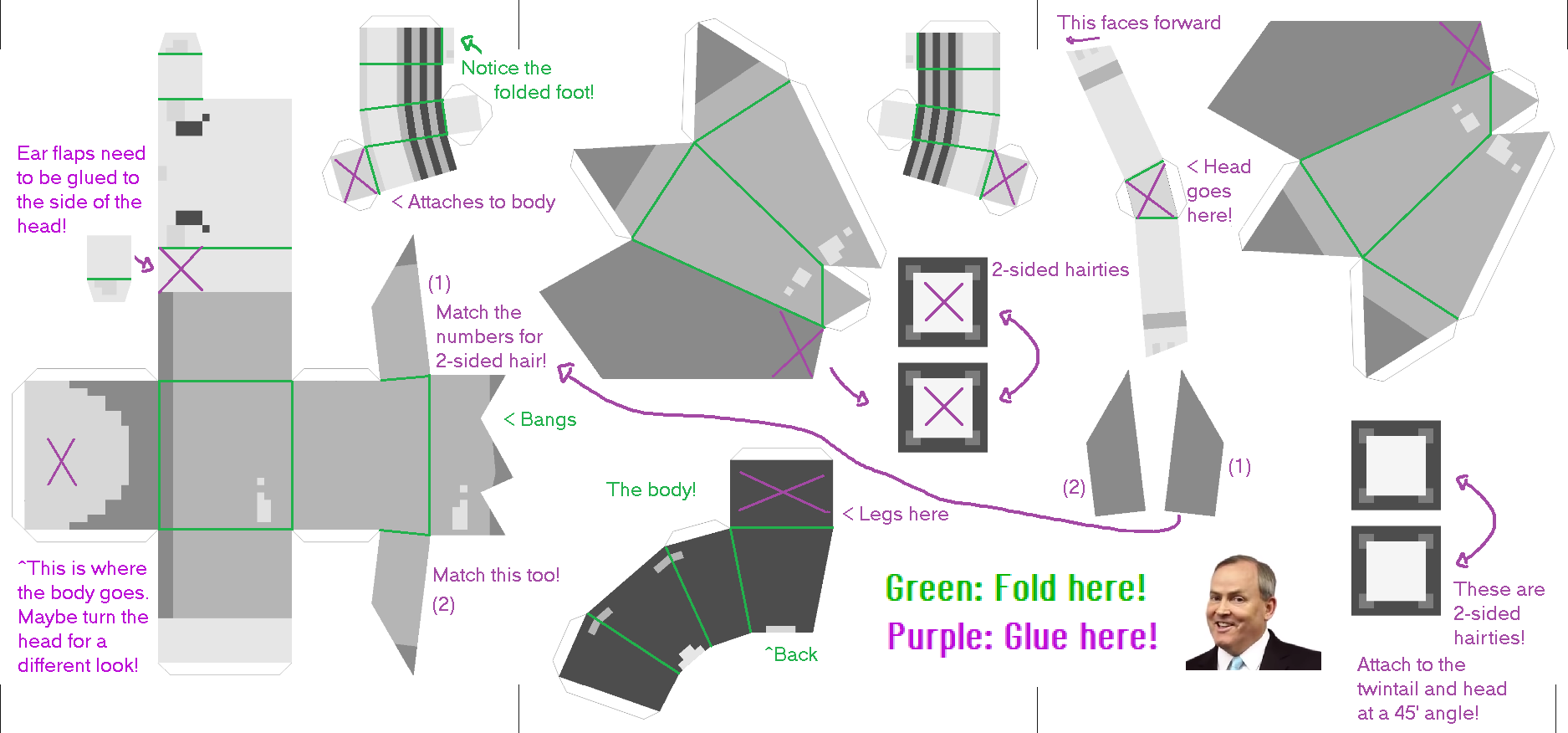 And now, the templates! The trick here is to glue on the twintails last, since the big square hairties will push on the side pieces of hair. I don't glue the head to the body since it's cute to turn it around!
