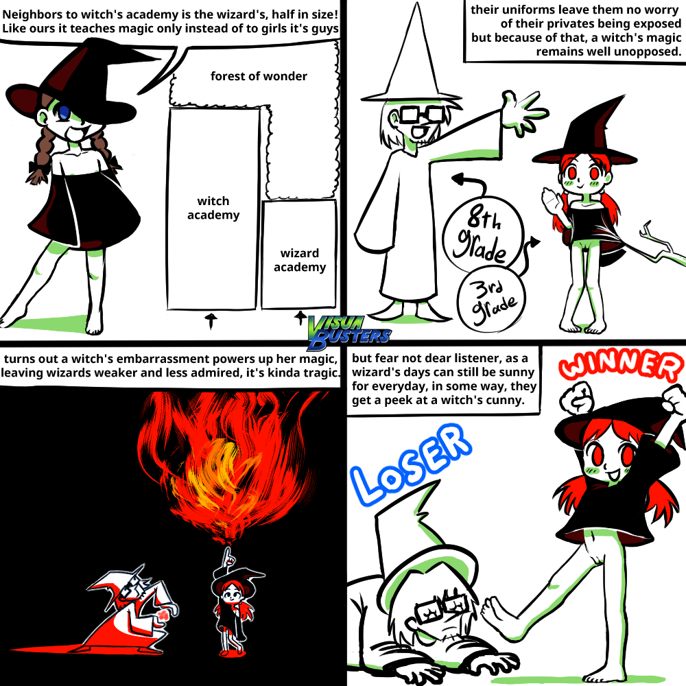The witch academy's located next door to a wizard academy! full of wizards! and they're kinda' not that great!